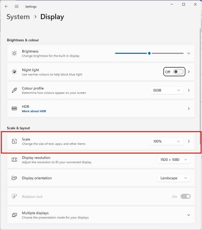 If you are using duplicate/clone displays, where both screens show identical content, any changes will apply to both screens. If you are using extended desktop, where the external screen shows different content to the main laptop screen, you can adjust each one independently. Just click on the one you need to change at the top of the display settings menu and then apply your changes.
